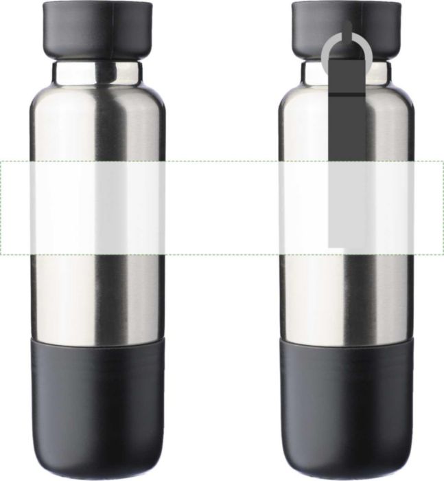 Die Zev ist eine doppelwandige Edelstahl-Trinkflasche mit 500 ml Inhalt. Innen besteht sie aus Edelstahl 304, außen aus Edelstahl 201. Der Schraubdeckel ist aus PP und besitzt ein transparentes AS-Fach. In der Flaschenbasis steckt ein 200-ml-Becher aus PP. Eine austauschbare Hand- und Trageschlaufe aus Polyester ist inklusive. Erhältlich in Schwarz, Grün oder Blau. Du kannst die Trinkflasche mit deinem eigenen Logo bedrucken oder gravieren lassen.