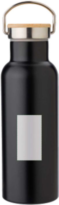 Material: Edelstahl (SUS 304), doppelwandige Konstruktion. Deckel: Bambus-Schraubdeckel. Volumen: 500 ml. Farben: Schwarz, Weiß, Blau, Silber. Nutzung: für kalte und warme Getränke geeignet. Pflegehinweis: Handwäsche empfohlen.