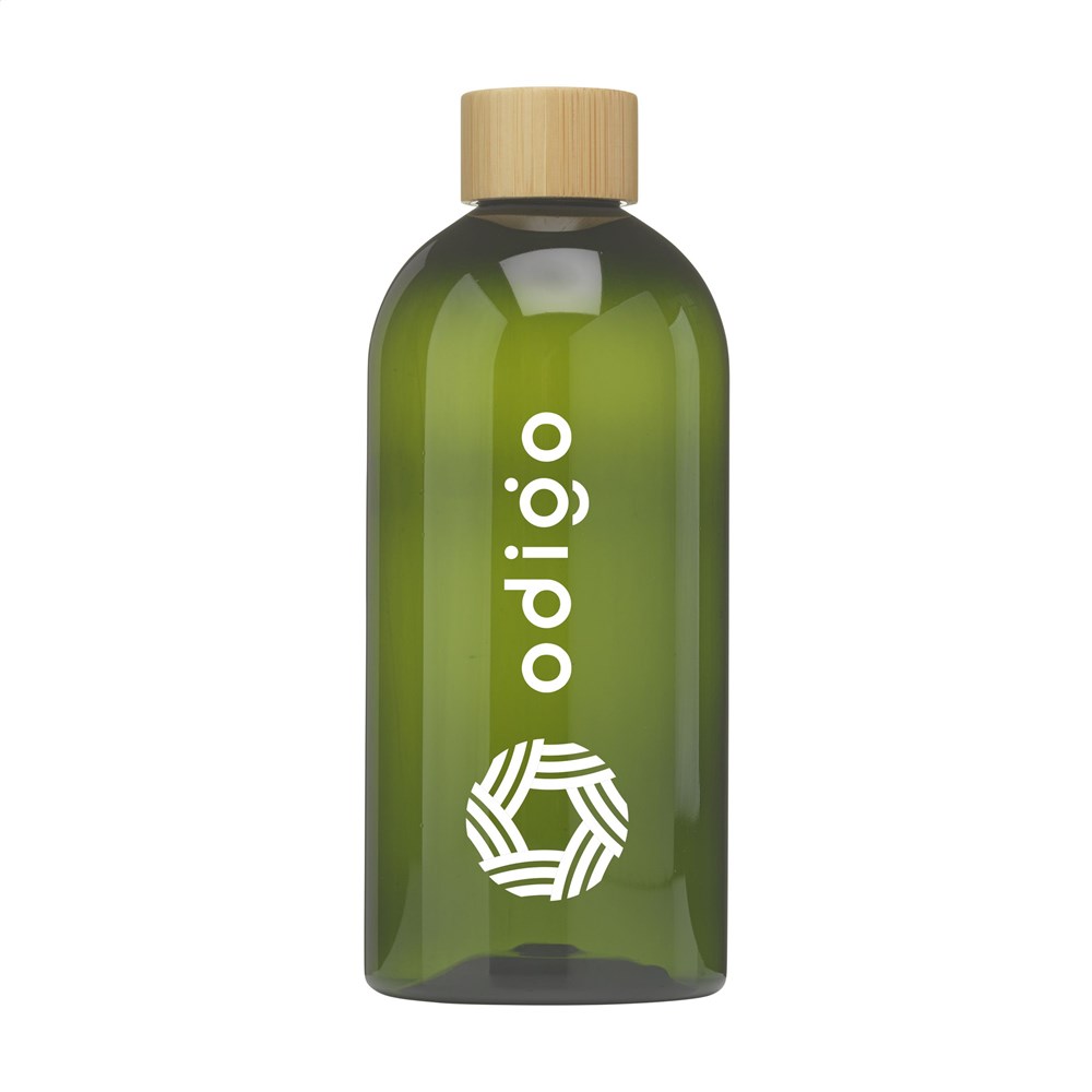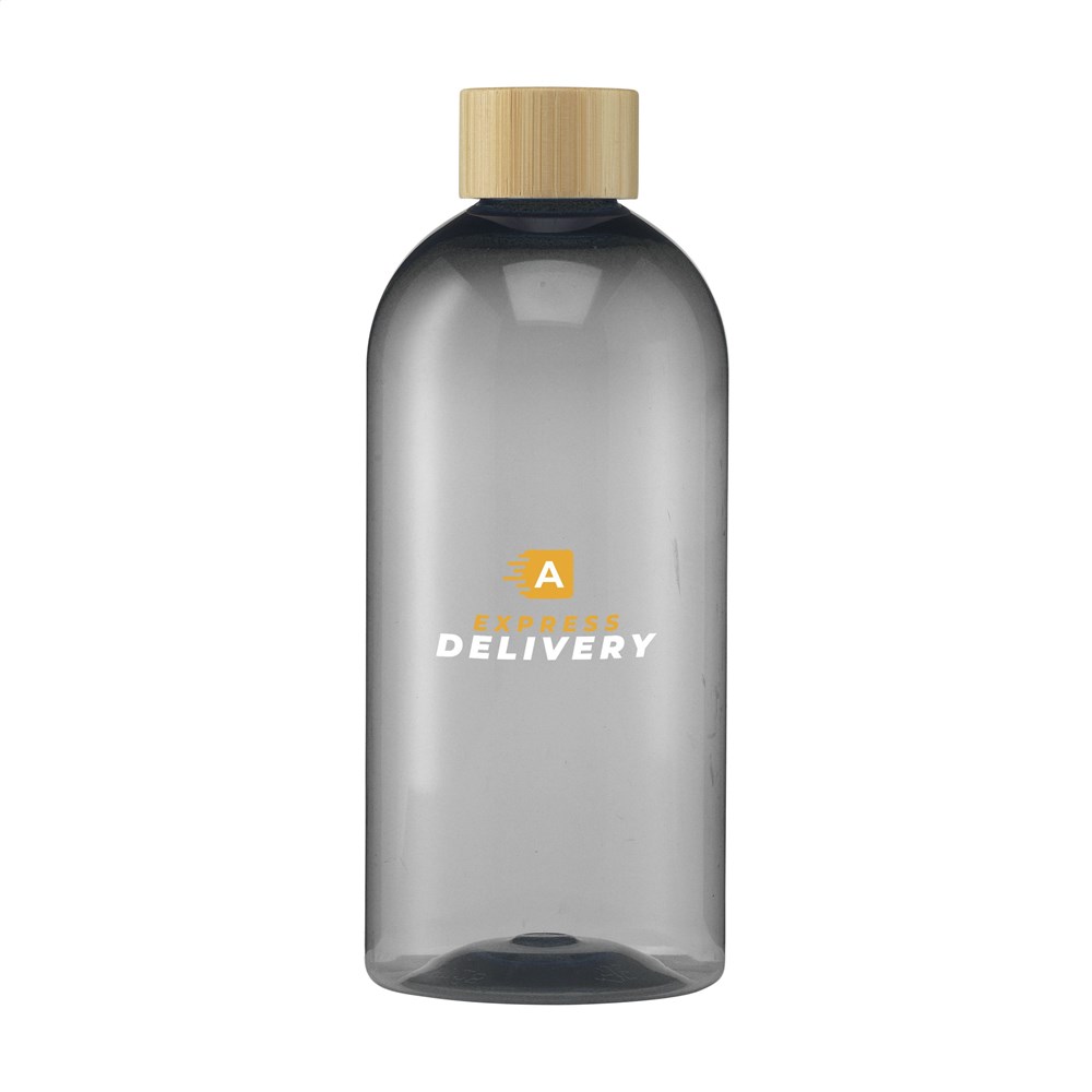 Material Flaschenkörper: 100% RPET (recyceltes PET). Deckel: Bambus mit Schraubverschluss.