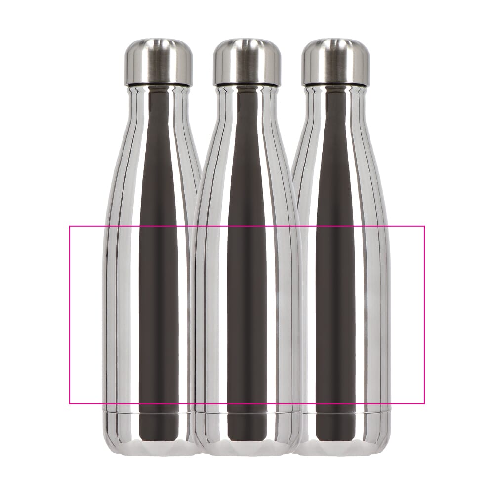 Volumen: 500 ml. Material: recycelter Edelstahl, doppelwandig, vakuumisoliert, mit Kupferbeschichtung. Farbe: Chrom, glänzend. Temperaturleistung: bis zu 24 Stunden kalt, bis zu 12 Stunden warm. Kondensationsfreie Außenfläche. Schraubverschluss. Pflege: Handwäsche empfohlen. Verpackung: Geschenkschachtel. Veredelung: ideal für Lasergravur; weitere Optionen auf Anfrage.