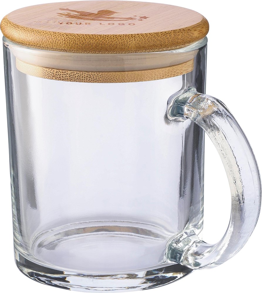 Printed Recycled Glass Cup 300 ml Bamboo Lid