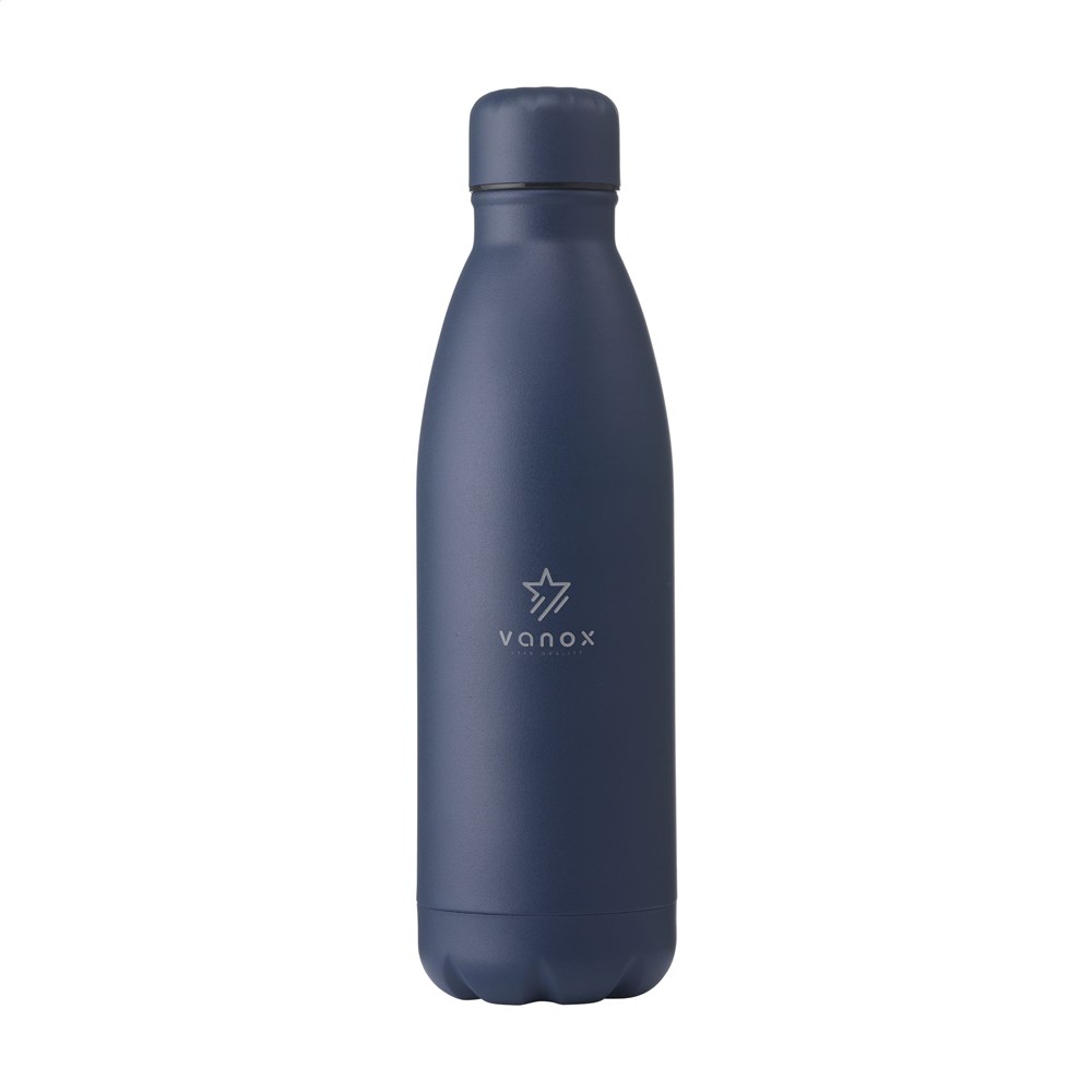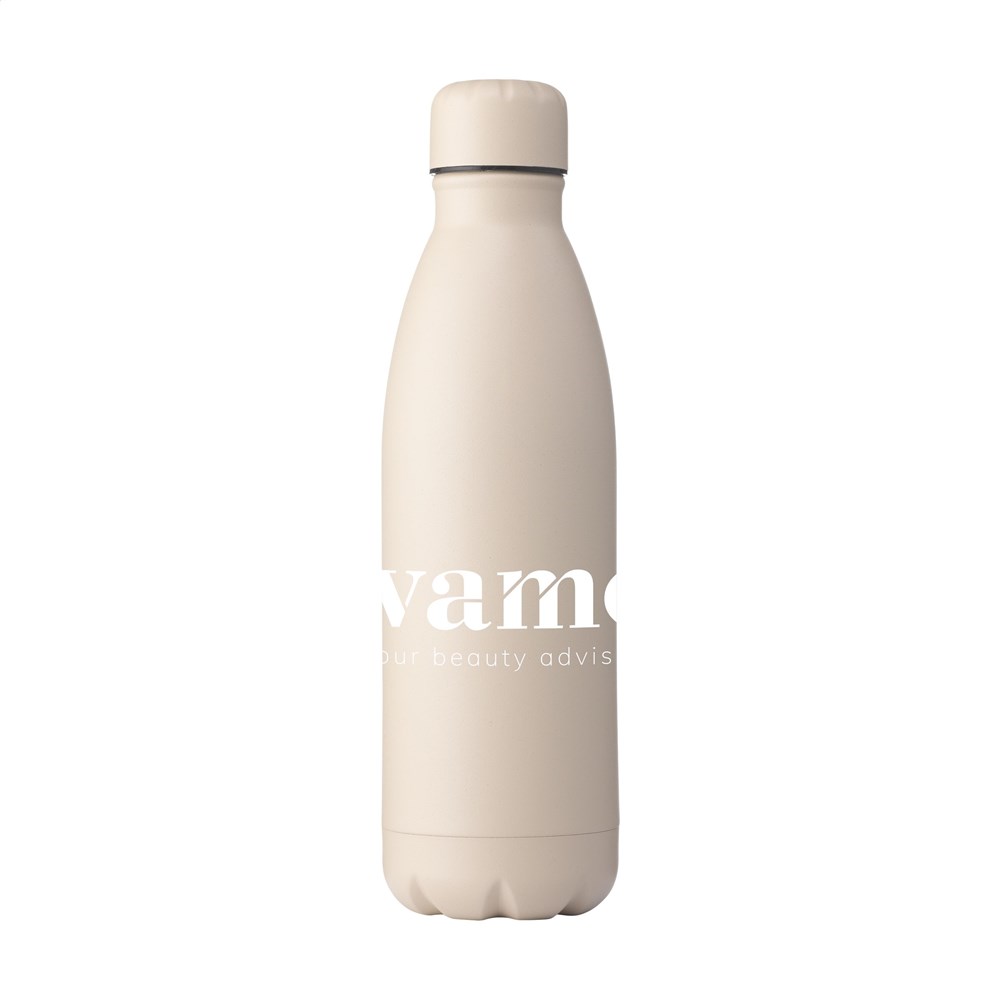 The Topflask Premium RCS Recycled Steel 500 ml drink bottle is a double-walled, leakproof bottle made from recycled stainless steel. It has a matte finish and a colour-matched screw cap. The slim body fits most car cup holders. The bottle is reusable and designed for everyday hydration. It is not dishwasher safe. The bottle is RCS-certified with a total recycled content of 85% and is individually packed. Available colours: Black, White, Dark Blue, Brown, Light Grey, Beige, and Dark Green.