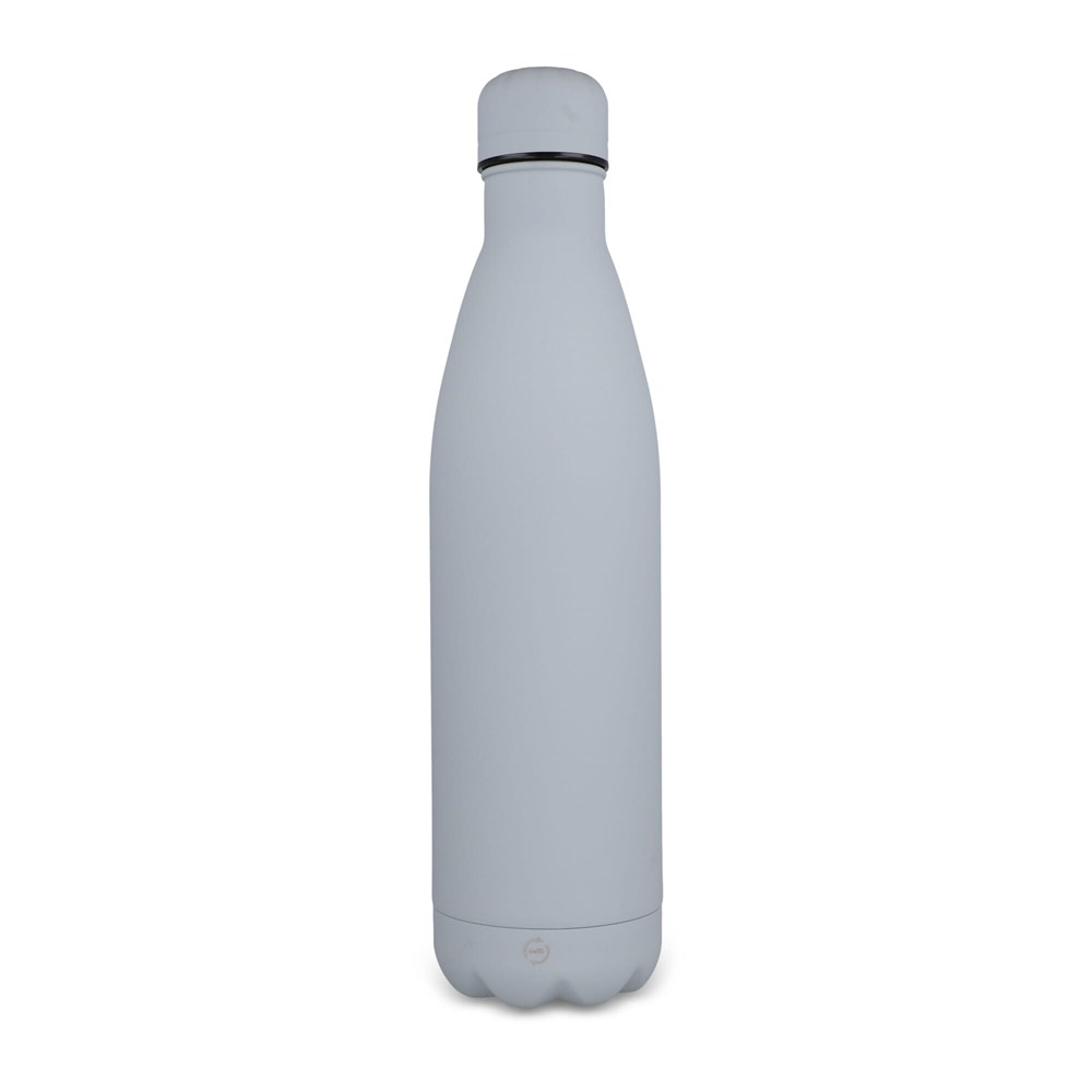 Capacity: 750 ml. Material: recycled stainless steel. Insulation: double-wall, vacuum insulated for long-lasting temperature retention. Finish: soft touch exterior. Closure: leakproof screw cap. Colours: Black, Red, Blue, Grey, Navy, Beige, Olive Green. Personalisation: logo print or laser engraving on the bottle body.
