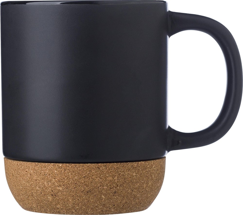 300 ml capacity. Ceramic body with a cork base for a comfortable grip. Available in black and white. Laser engraving applies to the black colour only. Designed for repeated use at events and in workplaces. Packaging and print areas are provided on request with your quote.