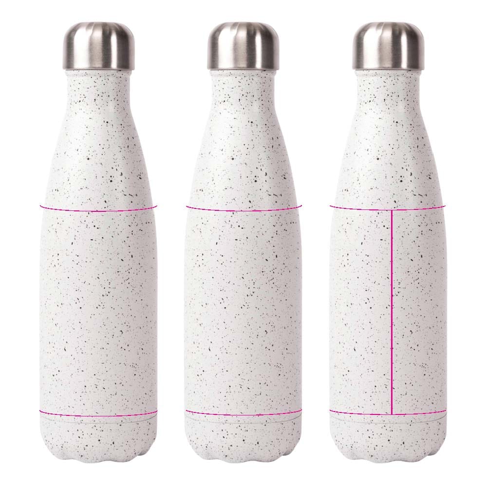 The Sagaform Nils Steel Bottle Splash 500ml is a double-wall vacuum insulated stainless steel water bottle with a speckled design. It holds 500 ml and features a copper-coated inner layer for strong temperature retention and no condensation. Your drinks stay cold for up to 24 hours or warm for up to 12 hours. Available as a variable product in Black or White. You can customize this bottle with your own logo.