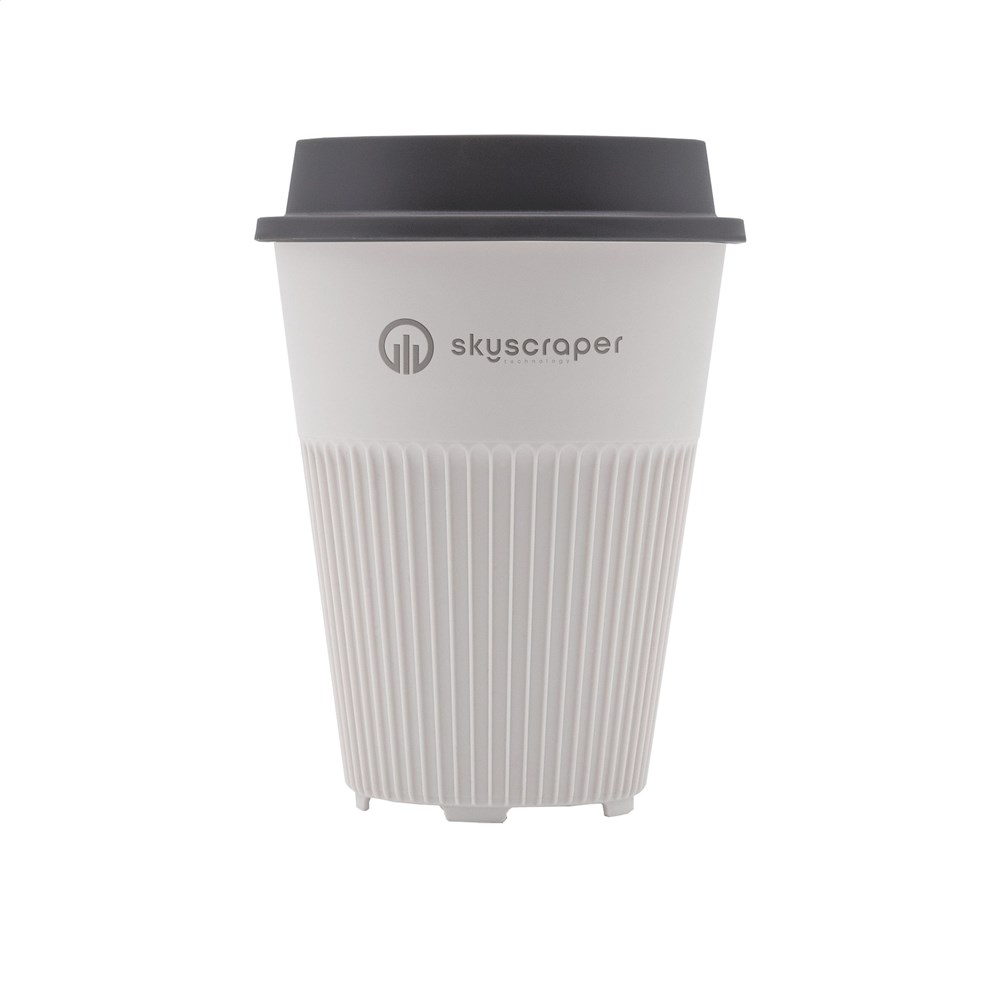 The Circular&Co Returnable Cup with lid is a reusable coffee-to-go cup with a 227 ml (8 oz) capacity. It is made from 100% recyclable polypropylene (PP). The cup is stackable and has a ribbed wall for heat dispersion and a secure grip. A quick-dry base helps reduce moisture rings. The sip lid limits spills and fits standard car cup holders. You can print this cup with your own logo. Available colours: white and dark grey. Select your preferred colour and branding options on the product page.