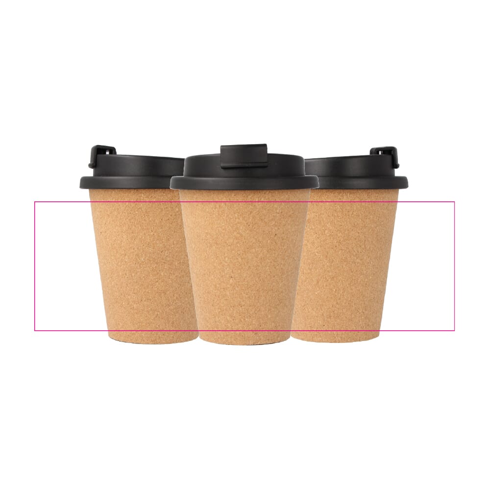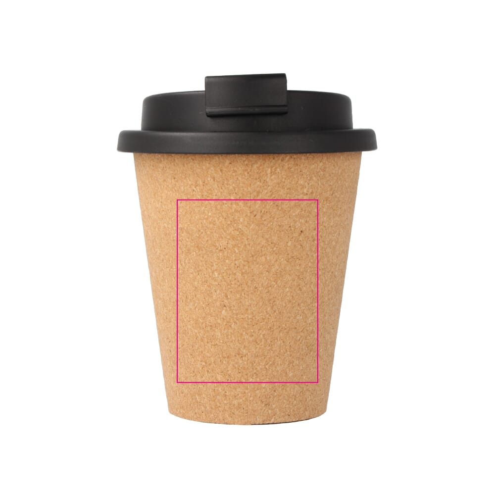 The R-PP Cork Coffee Cup 350 ml is a reusable coffee cup for daily hot drinks. It is made from recycled polypropylene (R-PP) with a natural cork grip. The cup is black. Capacity is 350 ml. You can print this coffee cup with your own logo.