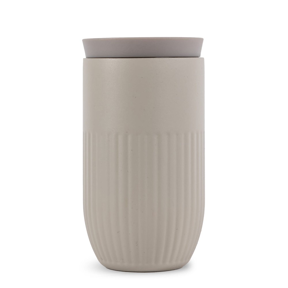 Capacity: 320 ml. Double-wall vacuum insulation with copper layer. Keeps drinks hot up to 4 hours and cold up to 8 hours. Ceramic interior. 360° drinking from any side. Leakproof when closed. Dishwasher-safe construction. Seamless body made from recycled stainless steel. Colours: Black, Blue, Grey, Pastel rose, Beige, Dark red, Dried green, Chrome, Deep mauve. Supplied in a gift box.