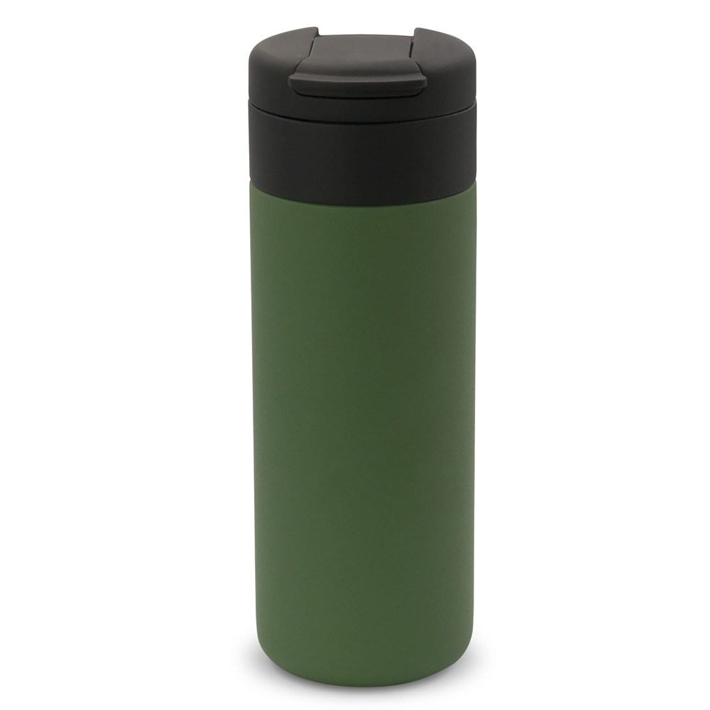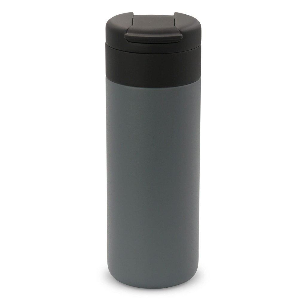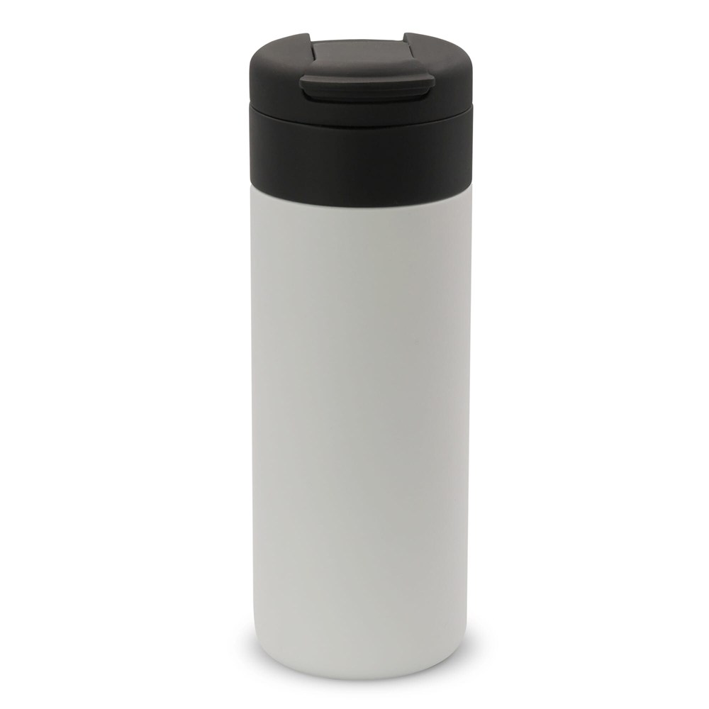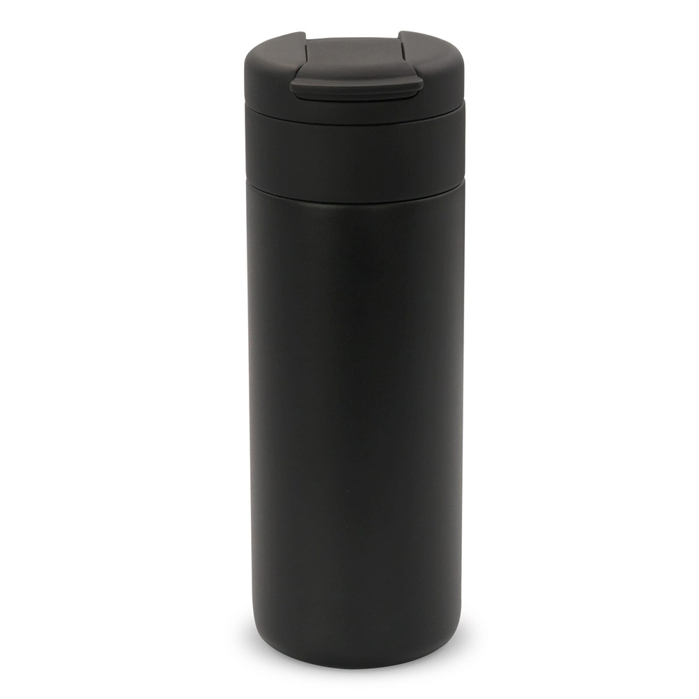 Inhoud: 400 ml. Dubbelwandig en vacuüm geïsoleerd voor langdurige temperatuurbehoud. Materiaal: RVS binnen- en buitenwand. Deksel: klapdeksel, 100% lekvrij. Kleuren: Zwart, Wit, Donkerblauw, Donkergroen, Donkerrood, Donkergrijs. Verpakking: geschenkdoos. Onderhoud: handwas aanbevolen, zeker bij bedrukking.