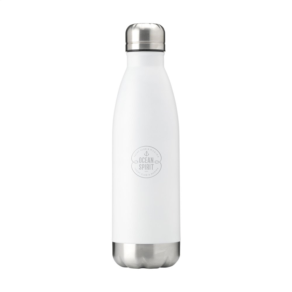 Materiaal: roestvast staal (RVS), dubbelwandig en vacuüm geïsoleerd. Inhoud: 500 ml. Dop: lekvrije schroefdop. Afwerking: metallic; mat bij de kleuren zwart en wit. Kleuren: Zwart, Rood, Wit, Groen, Blauw, Zilver. Verpakking: per stuk. Onderhoud: niet vaatwasserbestendig. Producttype: variabel (kleurvarianten).