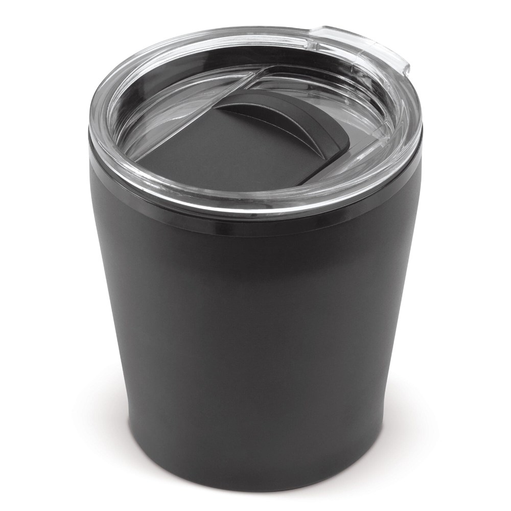 Deze koffiebeker is bedoeld voor zakelijke klanten, verenigingen en evenementen. Gebruik de beker voor promotie, beurzen en relatiegeschenken. De dubbelwandige constructie helpt bij het behoud van de temperatuur van zowel warme als koude dranken. Het compacte formaat is praktisch voor koffiecorners, recepties en to-go uitgifte.