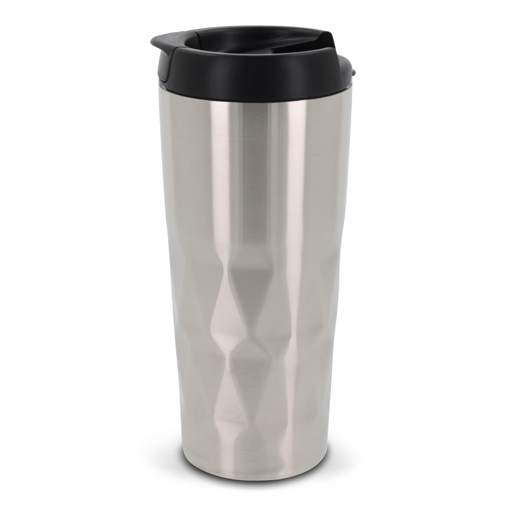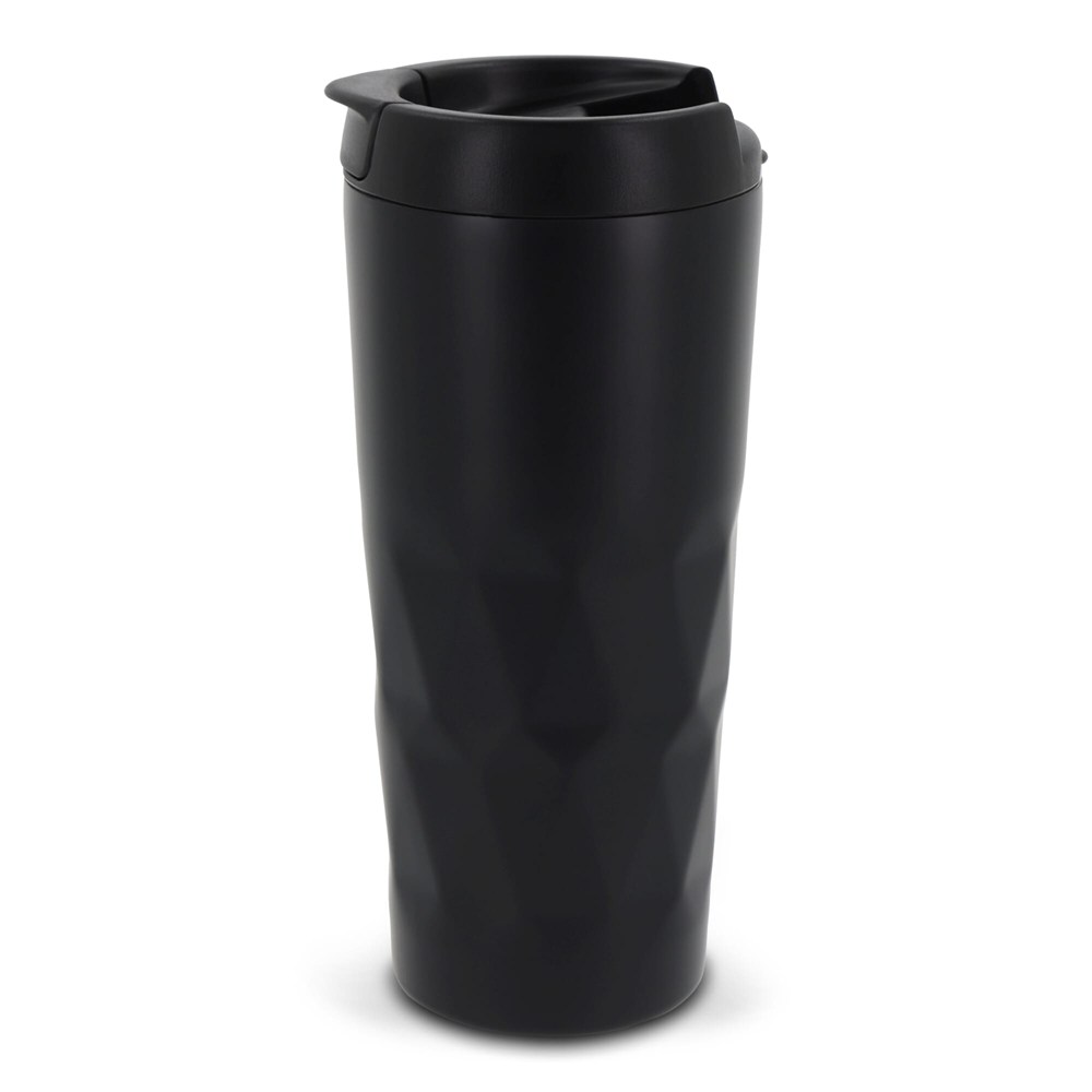 Inhoud 450 ml. Dubbelwandige constructie voor temperatuurbehoud. Lekvrij deksel voor veilig meenemen. Oppervlak met diamantpatroon voor extra grip. Geschikt voor warme en koude dranken. Kleurvarianten: Zwart, Rood, Blauw en Zilver. Beschikbaar als variatieproduct per kleur.