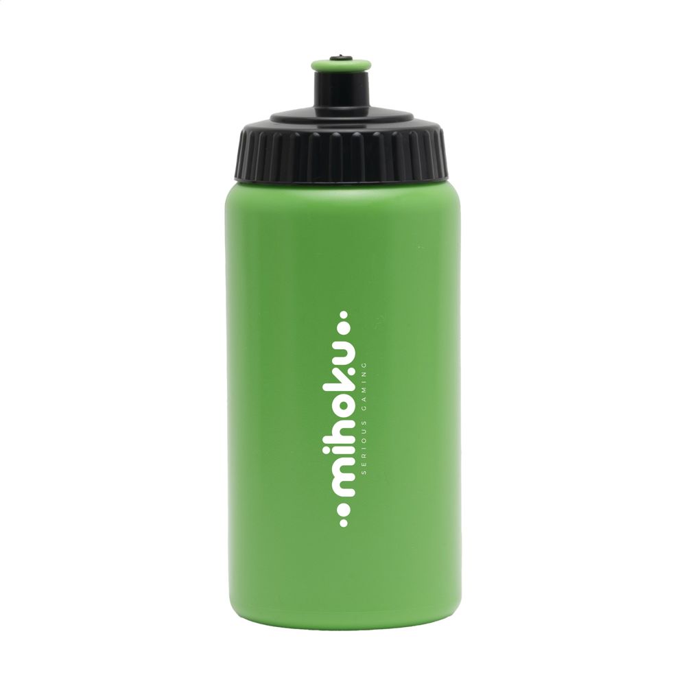 Materiaal: bio-LDPE op basis van suikerriet, 100% recyclebaar. Inhoud: 500 ml. Dop: schroefdop met drinkstop, kleur passend bij de body. Eigenschappen: lekvrij, Food Approved, Made in Holland. Onderhoud: niet vaatwasserbestendig; handwas aanbevolen. Kleur: zwart. Beschikbaar als variabel product; vraag naar actuele opties.