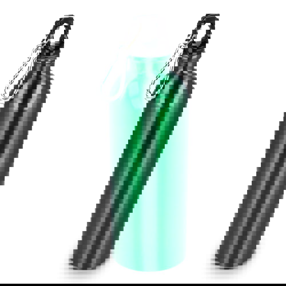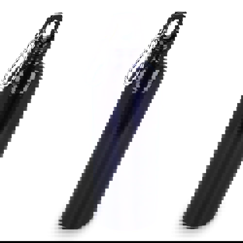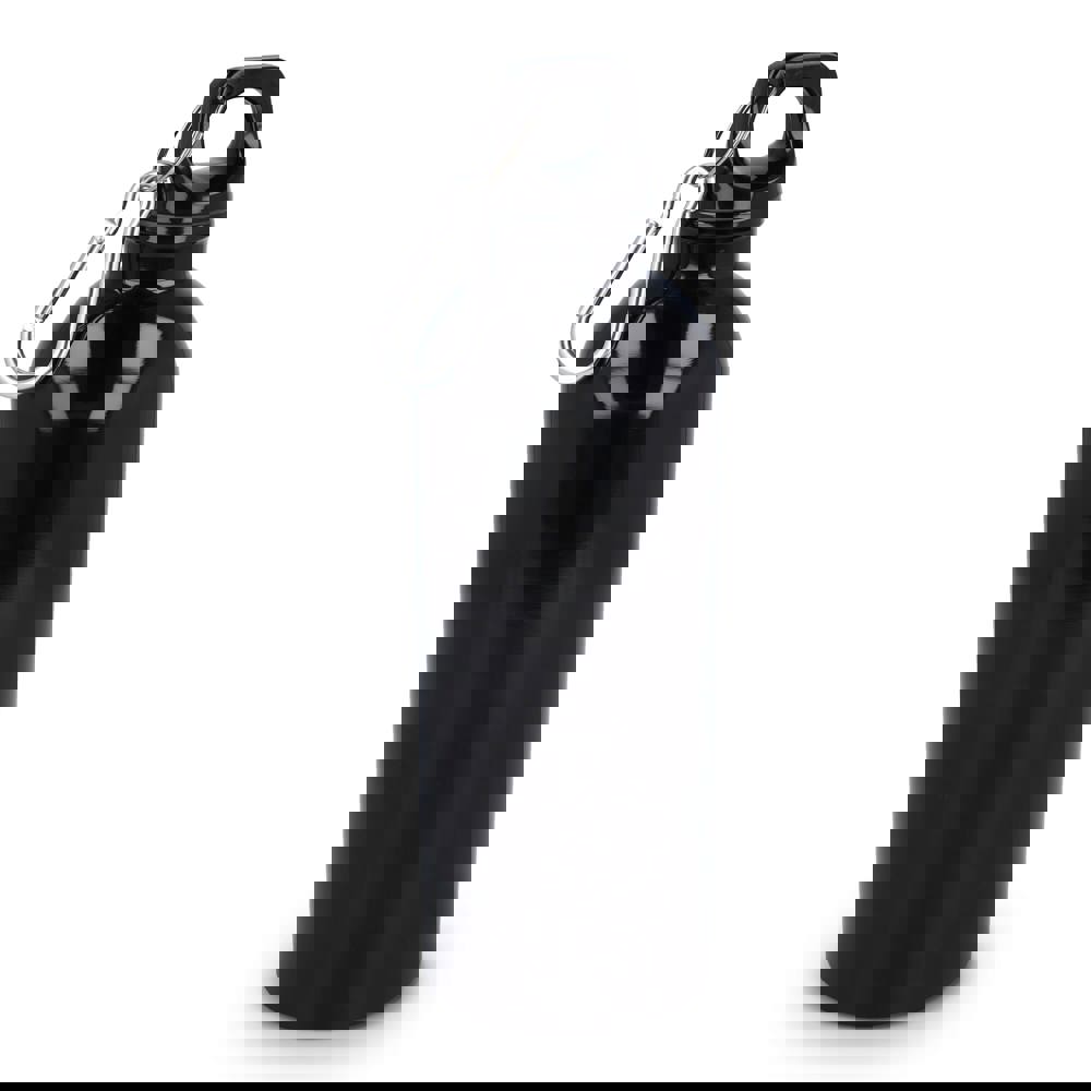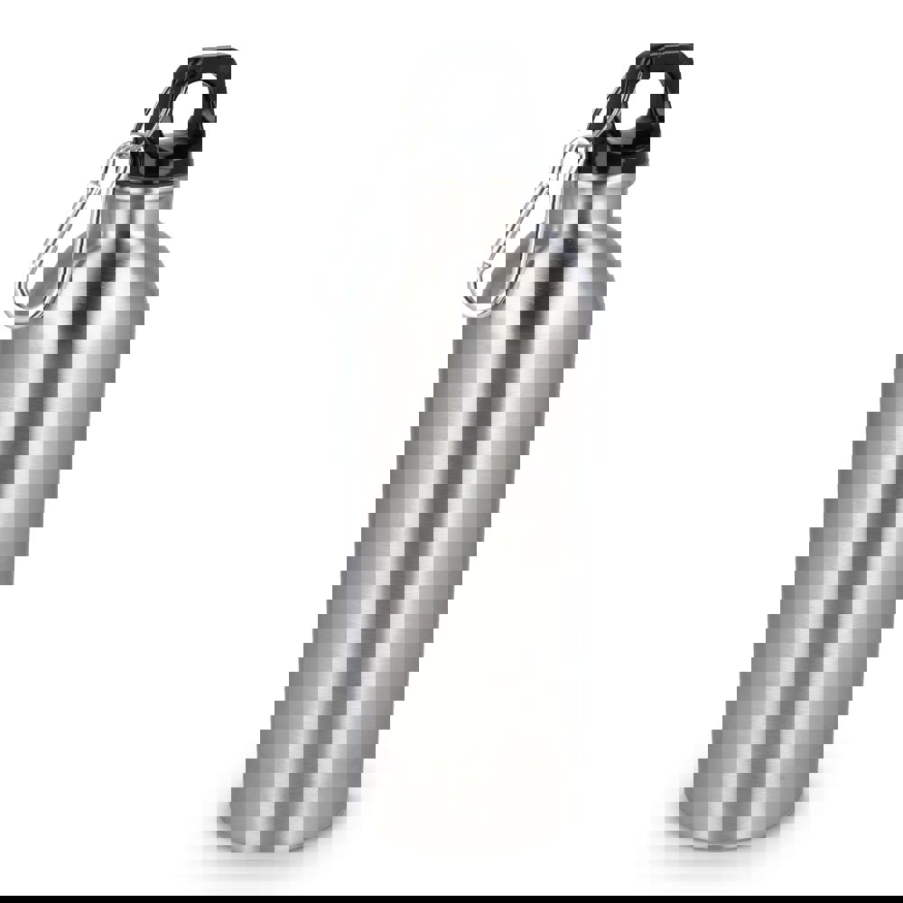 Dit is een gerecyclede RVS enkelwandige drinkfles van 500 ml met karabijnhaak. De fles is licht van gewicht en herbruikbaar. Je bevestigt de fles eenvoudig aan een tas of riem. Het product kan worden bedrukt met je eigen logo. De fles wordt per stuk geleverd in een giftbox.