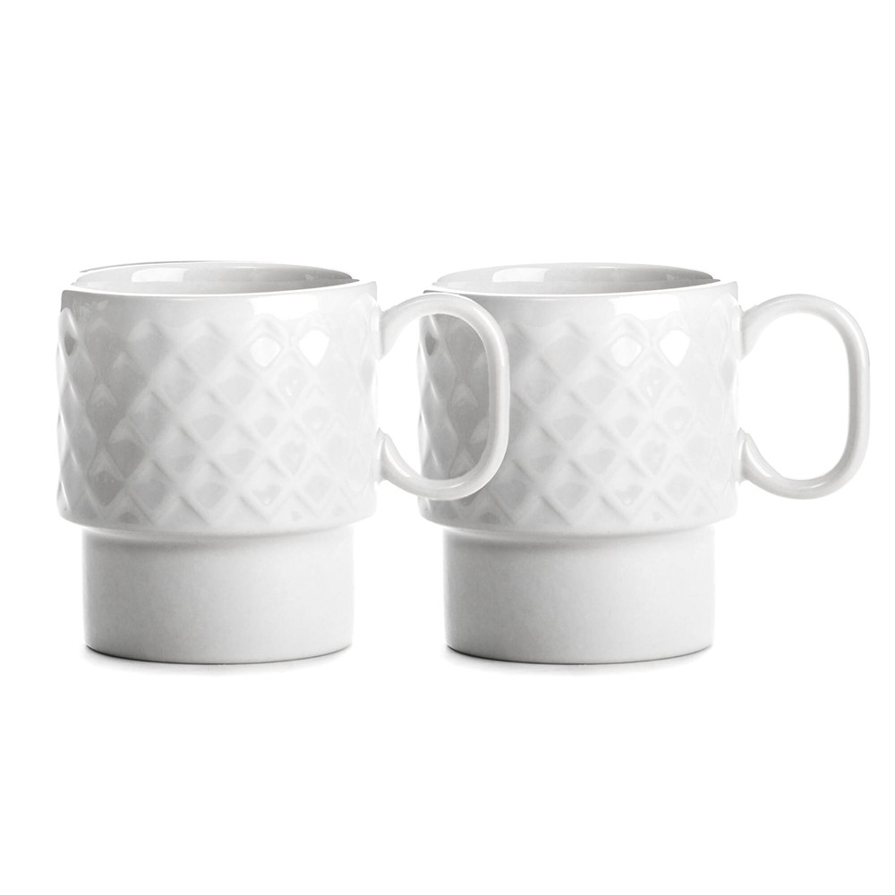 De Sagaform Coffee & More koffiemok is een set van 2 koffiemokken met een inhoud van 250 ml per mok. De mokken hebben een herkenbaar retro reliëfpatroon en maken deel uit van de Coffee & More-serie, ontworpen door Sagaform in samenwerking met Margot Barolo. De mokken zijn magnetron- en vaatwasmachinebestendig en worden per 2 stuks geleverd in een luxe verpakking. Verkrijgbaar in wit, donker-groen en donker-grijs. Dit is een variabel product: je kiest zelf de gewenste kleur per set.