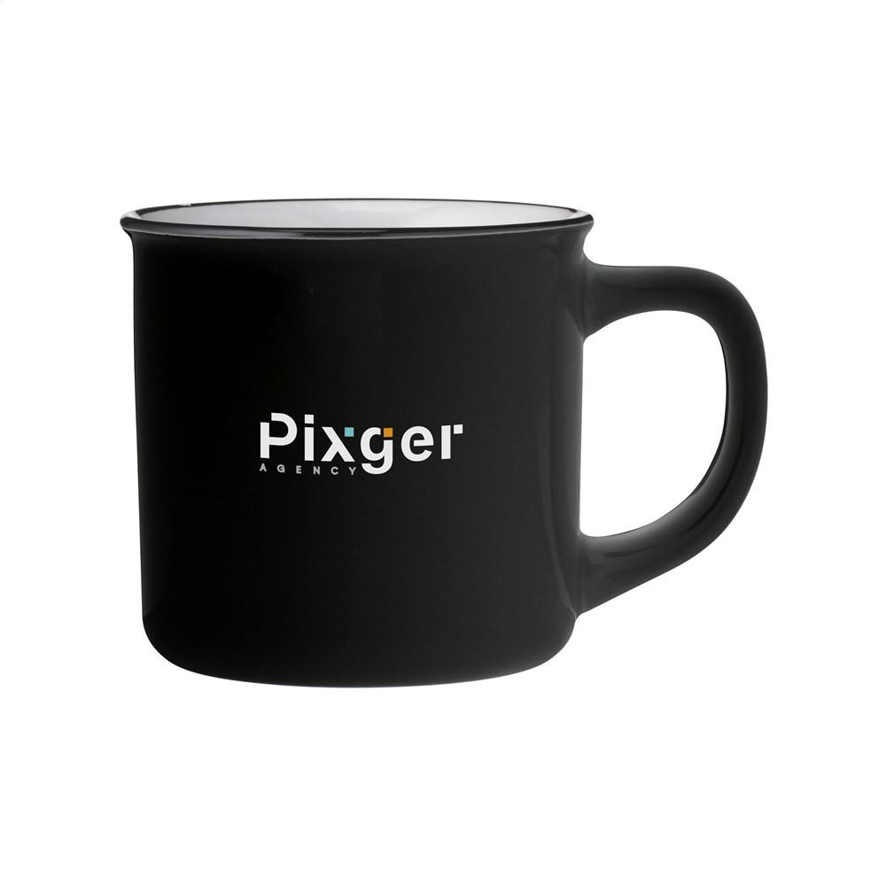 De Campfire 320 ml mok is een keramische mok in retrostijl voor dagelijks gebruik en promotie. De mok is vaatwasserbestendig. De opdruk is getest en gecertificeerd volgens EN 12875-2. Je kunt deze mok laten bedrukken met je eigen logo.