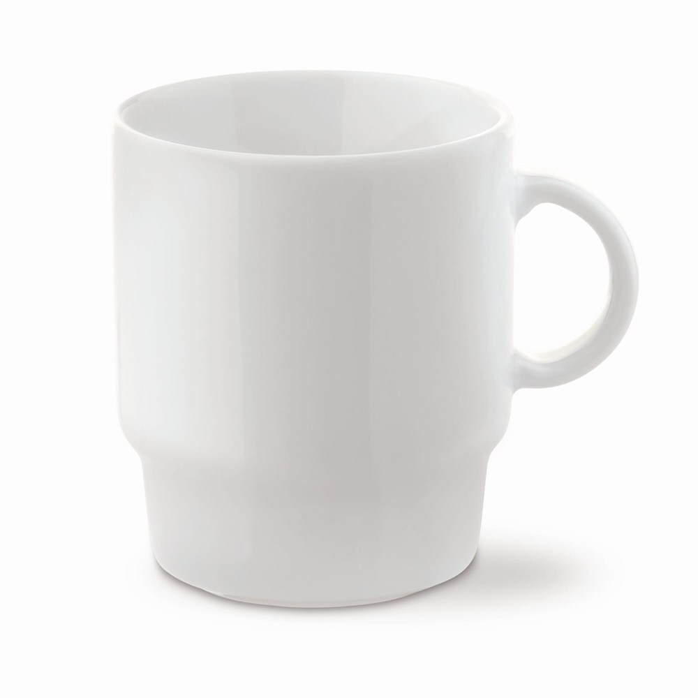 Gebruik deze porseleinen mok voor promotie, evenementen en beurzen. De mok is geschikt voor zakelijke klanten, verenigingen en evenementenorganisaties die een herkenbare uitstraling willen. De inhoud is ideaal voor koffie, thee en andere warme dranken tijdens meetings, workshops of hospitality-momenten.
