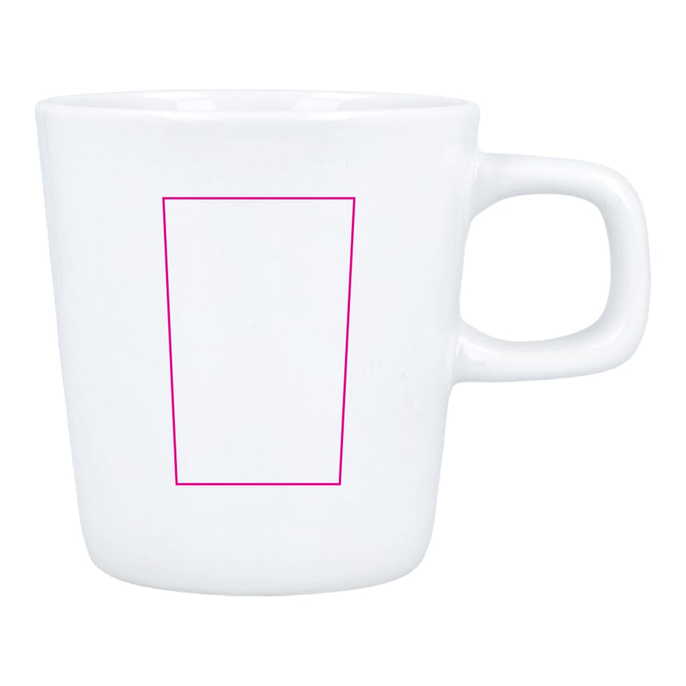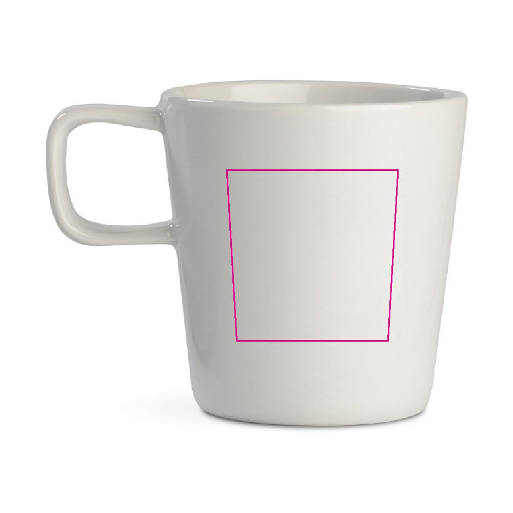 Materiaal: porselein. Kleur: wit. Inhoud: 180 ml. Model: conisch met subtiel oor. Stapelbaar ontwerp. Geschikt voor de meeste koffieautomaten. Bedrukking mogelijk via keramische transfer of zeefdruk. Herbruikbaar en bedoeld voor intensief dagelijks gebruik.