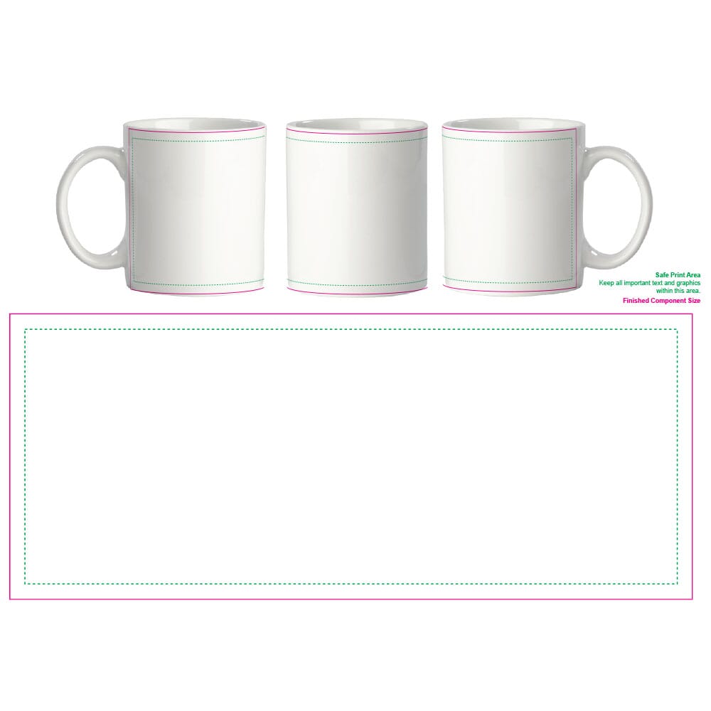 Materiaal: aardewerk. Kleur: wit. Inhoud: 300 ml. Bedrukking: sublimatie, full-colour, rondom met onderbreking bij het oor. Groot bedrukkingsoppervlak voor logo’s en beelden in fotokwaliteit. Geschikt als promotionele mok voor dagelijks gebruik. Variabel product: je kunt varianten kiezen op basis van oplage en bedrukking.