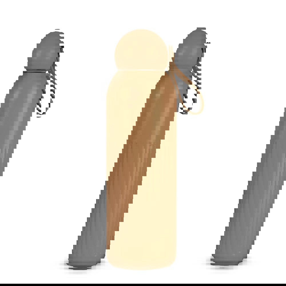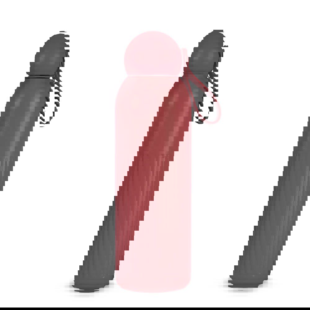 Het ontwerp heeft verticale strepen voor grip. De afgeronde dop is van gerecycled plastic en bevat een afneembaar rietje. De fles is vaatwasserbestendig. Verkrijgbaar in Zwart, Donkerblauw, Bruin, Pastel-rose, Beige, Donker-rood en Deep-mauve. De inhoud is 500 ml. De drinkfles kan worden bedrukt met je eigen logo.