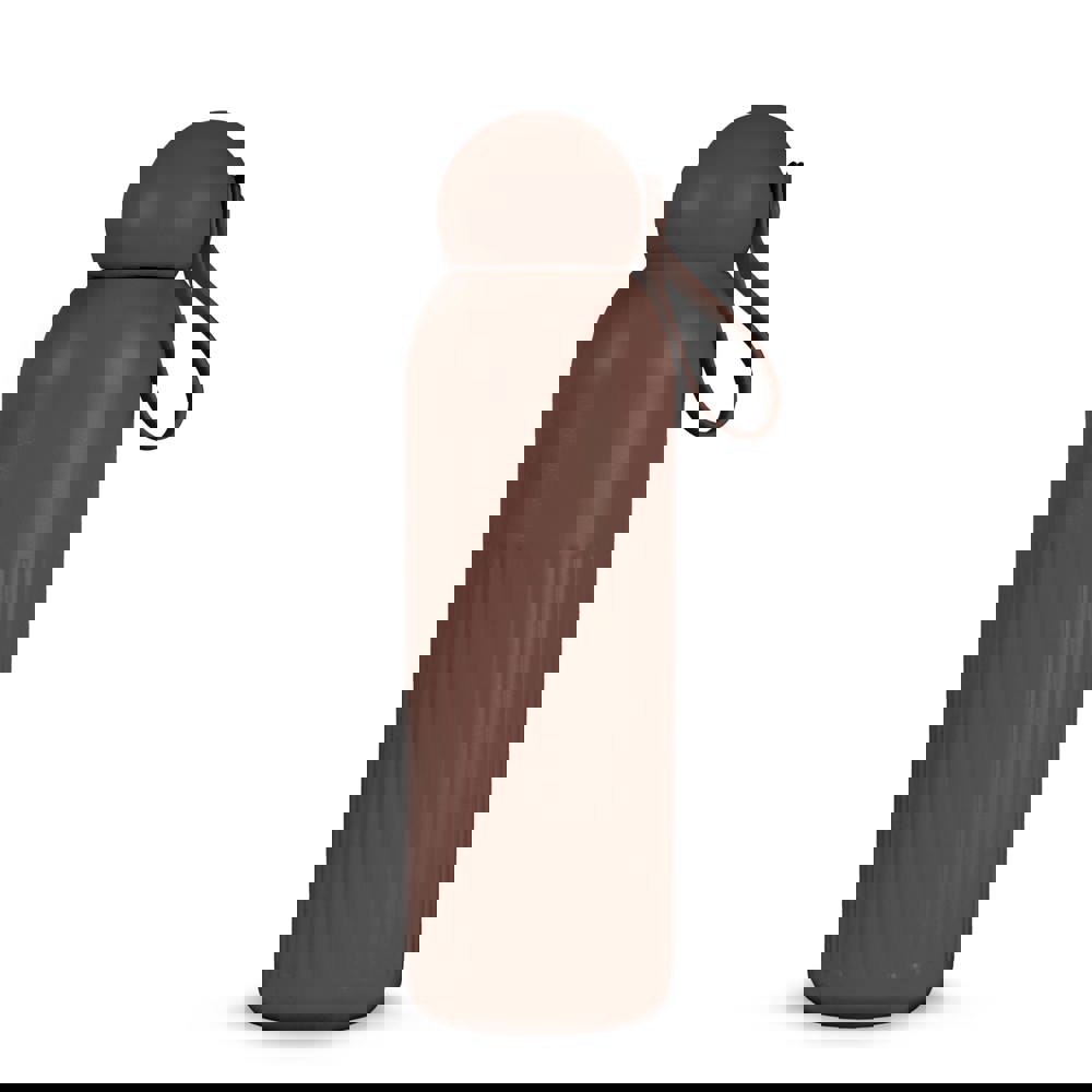 Materiaal: gerecycled staal, dop van gerecycled plastic. Isolatie: dubbelwandig met vacuüm en kopercoating. Thermische prestatie: 12 uur warm, 24 uur koud. Condensvrij exterieur. Inhoud: 500 ml. Ontwerp: verticale strepen, afgeronde dop, afneembaar rietje. Reiniging: vaatwasserbestendig. Kleuren: Zwart, Donkerblauw, Bruin, Pastel-rose, Beige, Donker-rood, Deep-mauve. Type: meerdere varianten beschikbaar.